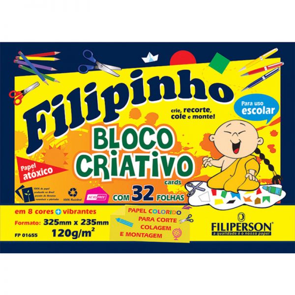 BLOCOS PARA EDUCACAO ARTISTICA FILIPINHO 8 CORES 120G. 32FLS BLOCO 01655 – FILIPAPER – Oficina do Professor