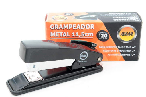 Características: Trilho cromado – Grampeia até 25 fls – capacidade p/ 100 grampos 26/6 Estrutura: metal com pintura eletrostática e plástico